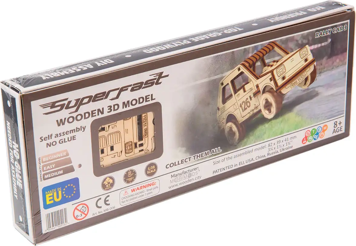 Découvrez un puzzle mécanique 3D ludique et créatif, avec lequel vous assemblerez facilement votre voiture de rallye sans colle. Grâce à 87 pièces découpées avec précision dans du contreplaqué de bouleau, obtenez une décoration stylée et une pièce de collection. Montage facile pour débutants comme avancés, et possibilité de peindre vous‑même pour stimuler la créativité de toute la famille.