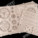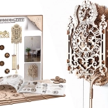 Le modèle est composé d’un matériau naturel — du contreplaqué de bouleau de haute qualité. Son principal avantage est l’assemblage sans colle ni outils. L’horloge est fonctionnelle après remontage et offre un agréable tic-tac jusqu’à 12 heures.