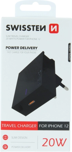 Chargeur pour iPhone Power Delivery 20W de Swissten - noir