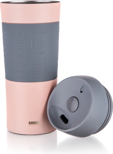 Gobelet mat à double paroi, adapté aux boissons froides et chaudes. La partie extérieure est en acier inoxydable 201 et la partie intérieure en acier inoxydable 304. Capacité utile 420 ml.