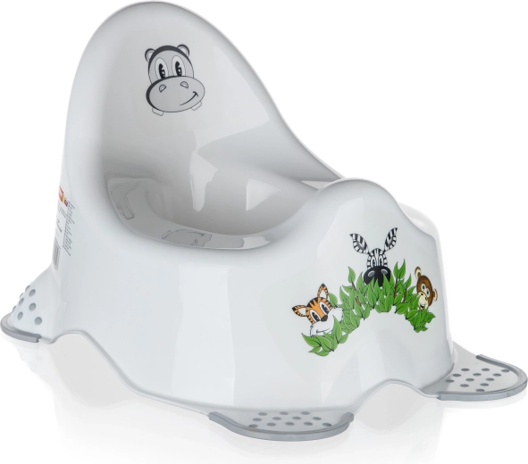 Le pot pour enfant Jungle de couleur blanche est conçu pour un apprentissage des toilettes sûr et confortable. Grâce à sa base large avec éléments antidérapants, il est très stable ; l’assise anatomique et le haut dossier assurent un soutien correct et un confort optimal, même lors d’assises prolongées. Sa surface lisse et hygiénique se nettoie facilement.