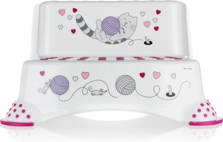 Offrez aux enfants plus d’autonomie dans la salle de bain et à la maison. Ce marchepied double au motif ludique de chat propose deux niveaux confortables pour monter facilement et en sécurité. Les pastilles antidérapantes sur les marches et les patins assurent un pas sûr et une bonne stabilité sur diverses surfaces.