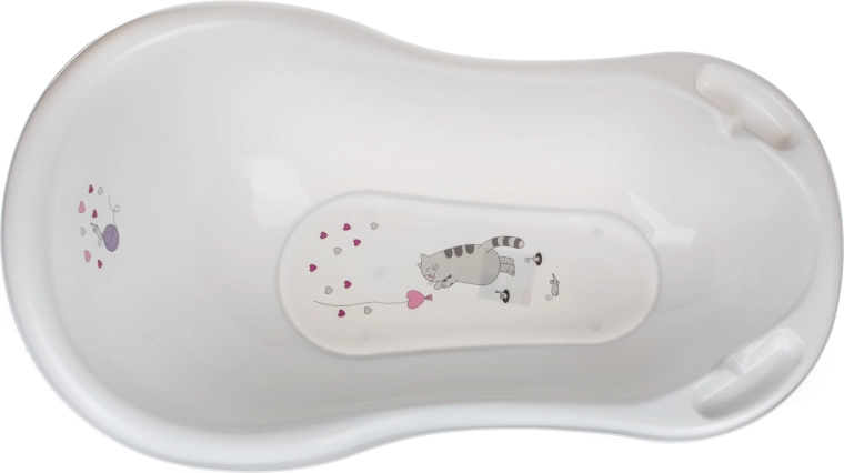 Petite baignoire pratique de 84 cm en élégant coloris blanc avec un adorable décor de chat. Elle offre une forme ergonomique pour un bain confortable et sûr dès la naissance, une manipulation aisée et un entretien simple. Des logements de rangement intégrés permettent de garder éponge, savon ou jouets toujours à portée de main. Charge maximale jusqu’à 25 kg.
