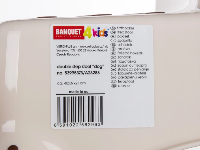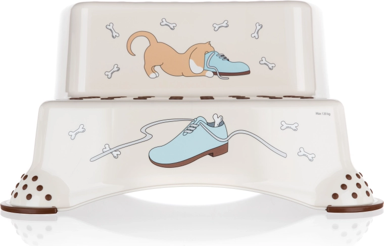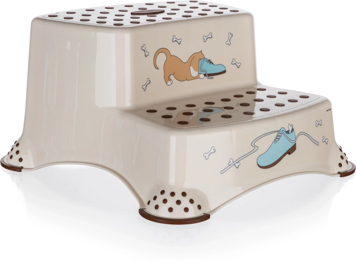 Le marchepied beige à deux niveaux avec le motif ludique DOG est l’accessoire idéal pour les enfants dans la salle de bain, la cuisine ou la chambre. Les picots antidérapants sur les marches et les patins antidérapants sur la partie inférieure assurent une démarche sûre sur surface humide ou sèche. Grâce à ses dimensions compactes 40,5 × 37 × 21 cm, il est facile à transporter et à ranger.