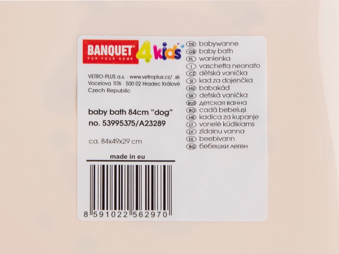 La baignoire BANQUET avec décor Dog est conçue pour un bain confortable et sûr des nourrissons et des tout-petits. Le modelage ergonomique soutient le corps de l’enfant, tandis que les bords lisses et arrondis améliorent la sécurité et le confort. Grâce à sa construction légère en plastique, la baignoire se transporte facilement et reste propre sans effort.