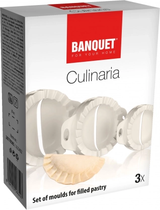 Set de moules en plastique pour pochettes farcies CULINARIA. L’ensemble comprend 3 pièces de diamètres 8, 10 et 12 cm. Le set est un aide pratique pour créer vos gourmandises préférées.