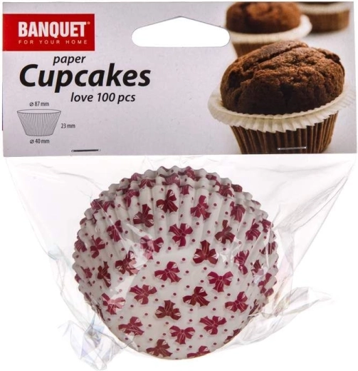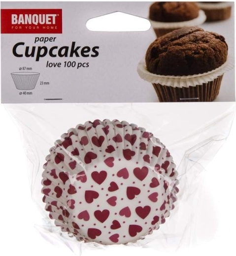 Set de caissettes de pâtisserie LOVE 8,7 cm, 100 pcs, assortiment de couleurs, diamètre du fond 4 cm, hauteur 2,3 cm, destinées à la cuisson et au service de muffins ou de classiques petits paniers garnis.