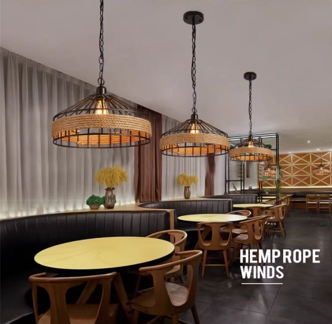 Cette lampe de plafond combine un style vintage avec des détails modernes et sera une décoration parfaite pour votre salon ou votre salle à manger, notamment comme éclairage au-dessus d’une table, d’un banc ou d’un bar. Elle trouvera également sa place dans des restaurants modernes, des hôtels, des cafés et des bars grâce à son design original et à sa fabrication robuste en métal et corde de chanvre. Elle est suspendue à une ⚓ chaîne originale et possède une douille standard E27 pour ampoule.