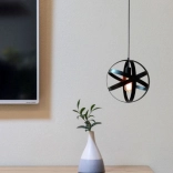 La structure sphérique avec des bandes de métal entrelacées donne à la lampe un aspect géométrique et original.