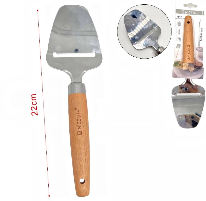 Le trancheur vous permet de couper le fromage en morceaux uniformes. Un accessoire indispensable dans chaque cuisine. Un produit pratique et fonctionnel, sans lequel de nombreuses tâches seraient difficiles. Le couteau possède une lame tranchante qui convient à tous les types de fromage. Le couteau est sûr et pratique. Le trancheur est fabriqué en acier inoxydable et le manche est en bois.