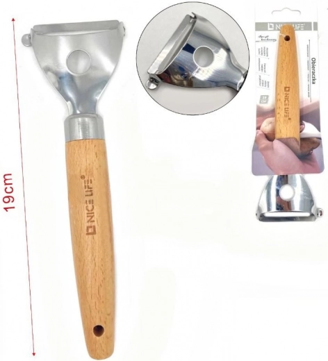 L’éplucheur est fabriqué en acier inoxydable de haute qualité avec un manche en bois.