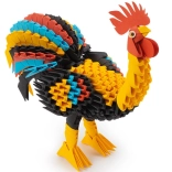 Le kit complet comprend 517 modules en papier permettant d’assembler un coq impressionnant aux couleurs vives – un projet idéal pour une création patiente.