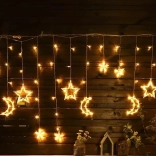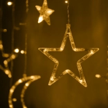 Guirlande rideau LED lune et étoiles 2,5 m, blanc chaud