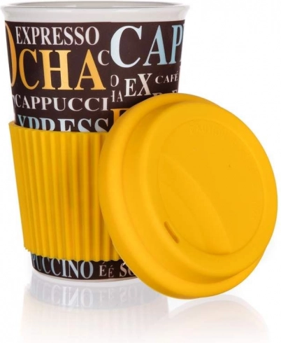 Mug en céramique Go de 400 ml avec un pratique couvercle en silicone, idéal pour les boissons chaudes et froides. Profitez d’un style élégant à la maison comme en déplacement !