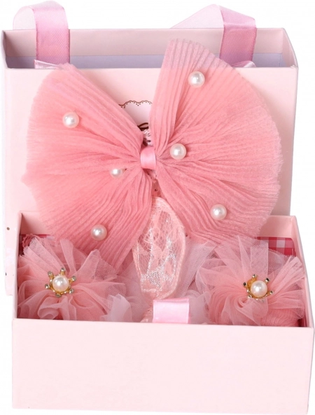 Le coffret cadeau 3‑en‑1 pour nouveau-né, dans une jolie teinte rose, sublimera n’importe quelle tenue de votre bébé. Idéal pour les baptêmes, naissances, baby shower et autres occasions spéciales. Il contient deux serre-têtes décoratifs et des chaussons assortis.