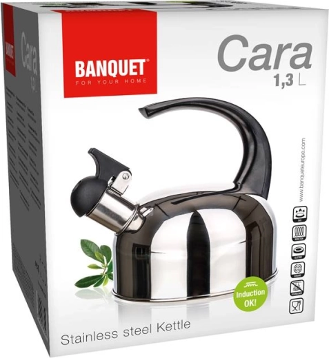 La bouilloire pratique avec sifflet BANQUET Cara d’un volume de 1,3 l est fabriquée en acier inoxydable résistant, garantissant une longue durée de vie et un entretien aisé. Grâce à son fond universel, elle convient au gaz, à l’électricité, à la vitrocéramique et à l’induction, s’intégrant parfaitement dans toute cuisine moderne.