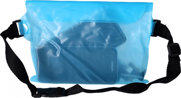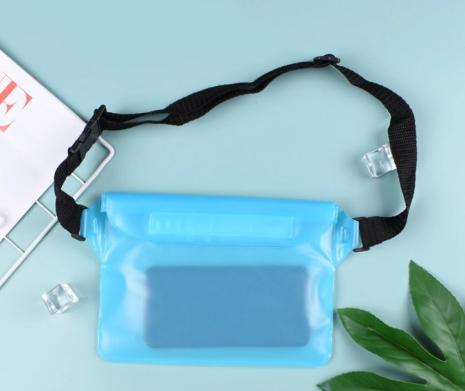Pratique et stylé, ce sac banane étanche bleu clair protège votre téléphone, vos papiers, clés et espèces de l’eau et du sable. Grâce à son matériau transparent, il permet le contrôle de l’écran tactile, dispose d’une sangle réglable et d’une fermeture sécurisée à velcro. Idéal pour la plage, la piscine et les sports nautiques.