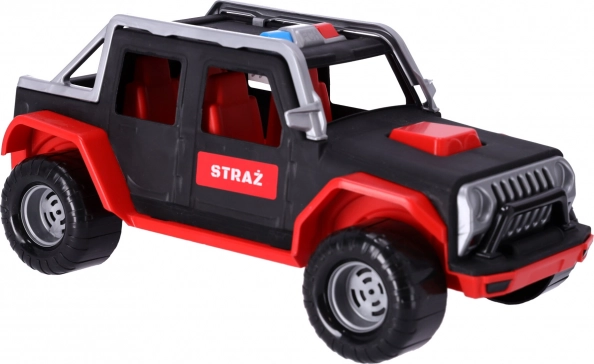 Ce véhicule complétera la collection d’engins d’intervention et plaira aux petits pompiers. Le jouet convient aux enfants de plus de 3 ans. La voiture est équipée d’une transmission intégrale : il suffit que l’enfant tire puis relâche pour que la voiture avance.
