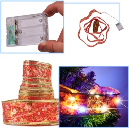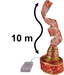 Ce ruban de Noël associe un aspect décoratif à un effet lumineux. Le ruban or et rouge avec LED intégrées diffuse une lumière douce et colorée sur toute sa longueur et convient parfaitement au sapin, aux rampes d’escalier, à la tablette de cheminée et aux compositions festives. L’alimentation par piles permet une utilisation même sans prise électrique.