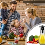 Élégant pulvérisateur en verre avec couvercle métallique, il permet d’appliquer uniformément l’huile ou le vinaigre sur la poêle, la plaque de cuisson et les salades. Grâce à la pompe à pression, il crée un fin aérosol qui économise les ingrédients et aide à cuisiner plus sainement avec moins de gras.