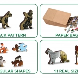 Des pièces spécialement façonnées en forme d’animaux et d’objets dynamisent l’assemblage. Le verso avec motif décoratif ajoute un nouveau défi.