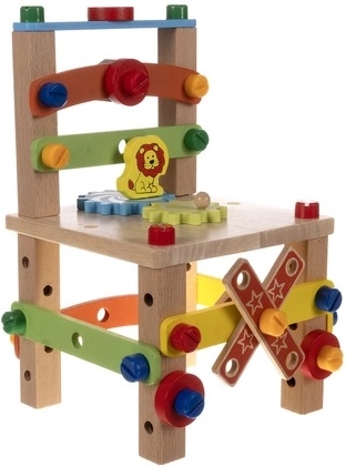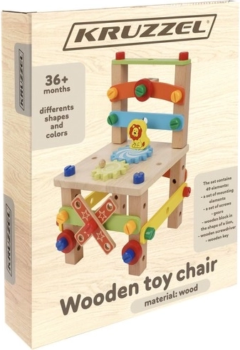 La chaise est livrée en pièces qui peuvent être facilement assemblées à l'aide des outils fournis. Les enfants peuvent ainsi créer leur propre projet.