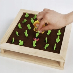 Le set est richement équipé : un fermier en bois, 80 billes, 24 « cultures » en feutrine, 16 cartes pour le jeu de mémoire, 8 coupelles en silicone pour le tri, 2 baguettes en bois et une cuillère. Grâce à des matériaux de qualité, le jeu est sécurisé, durable et agréable au toucher. Idéal pour les enfants dès 3 ans, à la maternelle comme à la maison pour exercer les compétences.