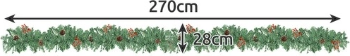 Des branches denses vertes aux longues aiguilles, complétées par des pommes de pin et des baies rouges, pour une guirlande superbe même sans décorations supplémentaires.