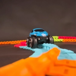 La structure flexible permet de créer des boucles, des spirales et des ponts. Chaque course est différente et le plaisir ne s’arrête jamais.