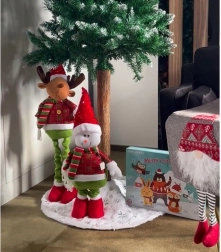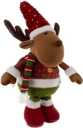 La hauteur du renne est réglable grâce à ses jambes télescopiques, et son bonnet est modelable, ce qui facilite l’adaptation à votre décoration. De plus, son design joyeux est complété par un manteau et une écharpe multicolores, contribuant à l’ambiance de Noël.