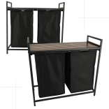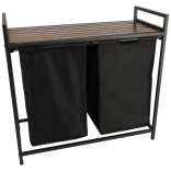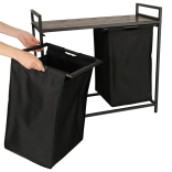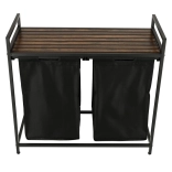Panier à linge à deux compartiments avec étagère en bois noir Loft