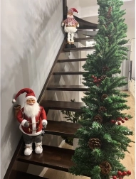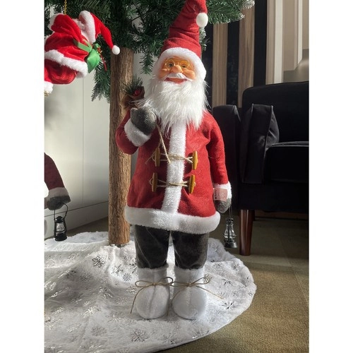 Ce charmant PÈRE NOËL en manteau rouge traditionnel à bord blanc et lunettes dorées iconiques apporte chaleur et magie de Noël à votre intérieur. Idéal comme décoration principale au sol, près du sapin ou en vitrine.