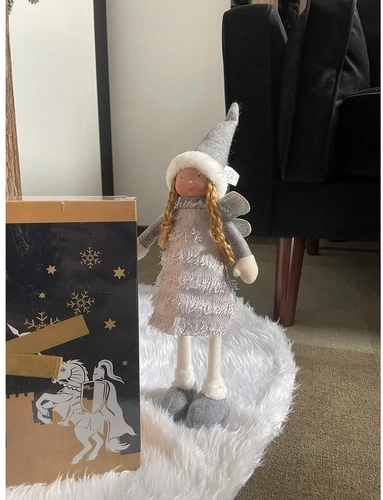 Charmante fée textile aux ailes scintillantes et tenue hivernale qui illumine chaque intérieur. Grâce à ses petites bottes stables, elle tient debout seule, scintille délicatement et se place sur une commode, un rebord de fenêtre ou près de la cheminée. La palette gris-blanc neutre s’harmonise parfaitement avec une décoration de Noël moderne ou traditionnelle.