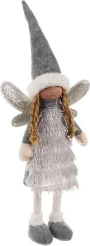Cette élégante figurine de Noël fée/ange, en gris, blanc et argent, apporte à la maison une atmosphère hivernale chaleureuse. Les ailes scintillantes et les textiles doux créent un effet de magie et de joie typique des fêtes.