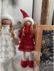 Cette figurine féerique d’ange/elfe en rouge apportera la magie de Noël dans votre maison. Les ailes dorées brillantes reflètent magnifiquement la lumière, et la tenue d’hiver aux détails tricotés, avec robe à col roulé et bonnet bordé de fausse fourrure, crée une allure chaleureuse et festive.