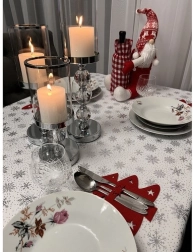 Les motifs nordiques, le carreau et le bonnet tricoté s’intègrent parfaitement à la table de Noël comme au salon.