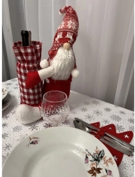 Vous cherchez une manière originale d’emballer une bouteille de vin ou de décorer votre table de fête ? La housse textile en forme de lutin est un accessoire joyeux qui instaure instantanément la magie de Noël. Matières douces, motifs tricotés et barbe duveteuse créent un détail spectaculaire sur la table comme au pied du sapin.