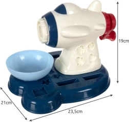 Une amusante « machine à pâtes » en forme d’avion à entraînement manuel. Mettez l’embout, appuyez et obtenez différentes formes de pâtes ou de décorations en pâte à modeler.