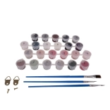 Le coffret comprend une toile montée sur châssis en bois, des peintures acryliques, 3 pinceaux et des accessoires de suspension. Ouvrez, peignez, accrochez.