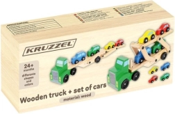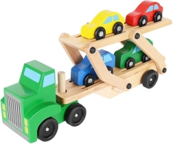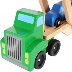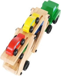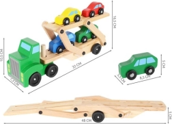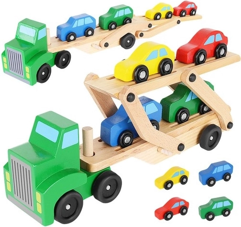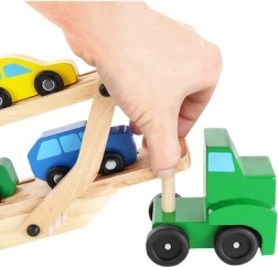 Le porte-voitures en bois offre des fonctions réalistes que les enfants adorent – remorques détachables, plateau supérieur pliant pour une montée facile et roues qui tournent en douceur. Quatre petites voitures rouge, bleue, jaune et verte invitent au jeu, au tri et aux courses, tout en aidant à la reconnaissance des couleurs et à la coordination œil–main.