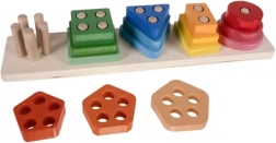 Le trieur et puzzle en bois KRUZZEL est un jouet éducatif astucieux pour les enfants dès 2 ans. Les pièces colorées en formes de base – cercle, triangle, carré, rectangle et pentagone – s’enfilent sur des chevilles avec obstacles, ce qui motive les enfants à manipuler et à effectuer des mouvements précis des doigts. Le jeu favorise la reconnaissance des couleurs et des formes, la patience et la mémoire.