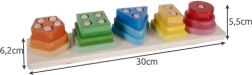 Enfiler les pièces à travers des obstacles sur les chevilles oblige les enfants à manipuler les formes avec précision – ils renforcent ainsi leurs doigts, leur concentration et leur coordination œil-main.
