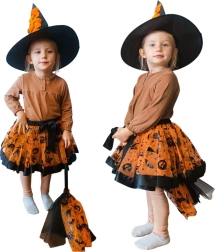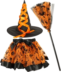 Tout ce dont une petite sorcière a besoin : chapeau pointu, tutu vaporeux et balai stylé dans un design assorti.