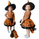 Costume de sorcière pour enfants, ensemble 3 pièces orange