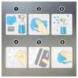 Mode d’emploi rapide : nettoyez et séchez la surface, disposez les motifs, collez progressivement et lissez avec une carte/une règle, puis terminez en essuyant avec un chiffon.