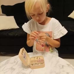 Cet ensemble créatif est un choix idéal pour les enfants qui aiment la création et le design. Il contient de nombreux pendentifs colorés de différentes formes et couleurs, permettant de créer des bijoux originaux. Tout est stocké en toute sécurité dans une mallette portable avec fermeture éclair, ce qui facilite le transport à l'école, chez les amis ou au jardin.
