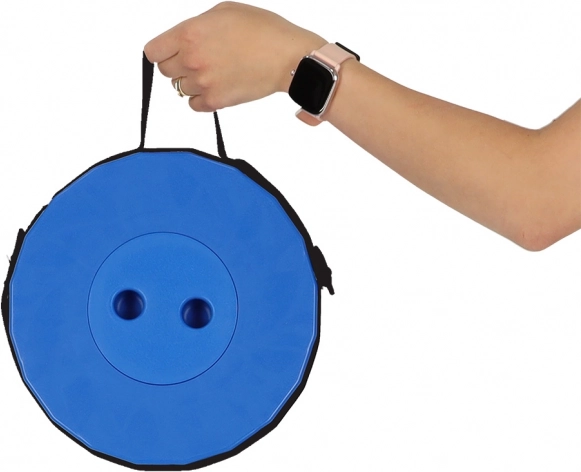 La poignée intégrée et la sangle réglable permettent un port confortable à la main ou à l’épaule. Une fois plié, le tabouret est plat et peu encombrant.