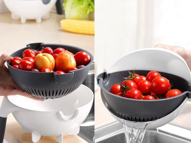 La passoire rotative simplifie le travail et permet un drainage immédiat de l'eau excédentaire après la découpe.