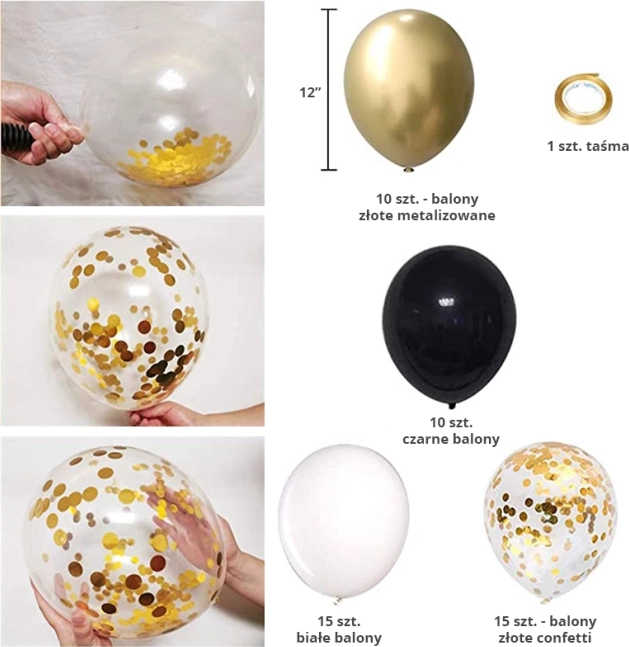 Set de ballons dorés et noirs - 50 pièces