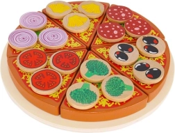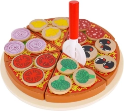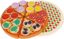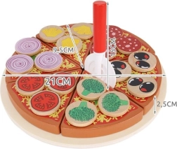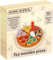 La pizza en bois avec velcro est un jouet créatif qui permet aux jeunes enfants de préparer des pizzas avec un assortiment d'ingrédients colorés. Le kit comprend 27 pièces, y compris la base, 6 tranches de pizza, une pelle, un couteau et 18 ingrédients végétaux différents. Grâce au bois de qualité et à la peinture sécurisée, le jouet est non seulement amusant mais aussi sûr. Des autocollants sont inclus, permettant de fixer les ingrédients et de « couper » la pizza, développant ainsi des compétences de coordination et de logique.